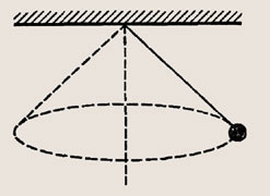 Задание 853. Шарик, подвешенный на нити, совершает вращение в горизонтальной плоскости, описывая окружность диаметром d (рис. 244). Если наблюдение производится в плоскости вращения, то движение шарика воспринимается как гармоническое колебание. Чему равна амплитуда колебаний? Что можно сказать о частоте обращения шарика и частоте колебаний?