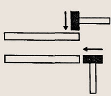Задание 893. В каком случае (рис. 250) при ударе по стальному рельсу распространяются преимущественно продольные волны, а в каком — поперечные? Рис.250