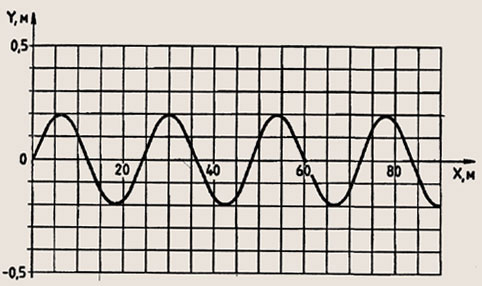 Задание 894. На соревнованиях по художественной гимнастике спортсменки часто используют длинную ленту, которой сообщают волнообразные движения. Рисунок 251 схематически представляет мгновенную фотографию такого движения. Определите длину волны и амплитуду колебаний.