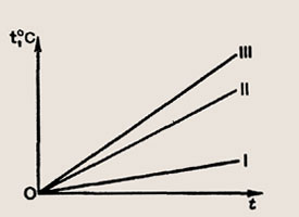 Задание 1001. На одинаковых горелках нагревались вода, медь и железо равной массы. Укажите, какой график (рис. 265) построен для воды, какой — для меди и какой — для железа. (При построении графика потери некоторого количества теплоты в окружающее пространство не учитывались.)