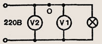 Задание 1374. При замкнутой цепи вольтметр V2 (рис. 338) показывает 220 В. Каким станет показание этого вольтметра, если в точке О произойдет разрыв цепи? Каким было показание вольтметра V1 до обрыва цепи? Каким станет показание вольтметра V1 после обрыва цепи?