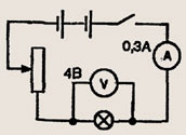 Задание 1398. По данным рисунка 346 определите энергию, потребляемую лампой в течение 10 с. Как будет изменяться потребляемая лампой энергия, если ползунок реостата переместить вверх; вниз?