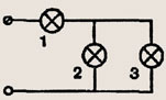 Задание 1411. Три лампы одинаковой мощности, рассчитанные на одно и то же напряжение, включены в цепь, как показано на рисунке 348. Одинаков ли будет накал нитей и ламп, если цепь замкнуть?
