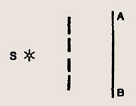 Задание 1501. На рисунке 369 показано положение источника света S и четырех вертикально расположенных реек. Перечертив рисунок в тетрадь, покажите, где на, стене (АВ) образуются узкие светлые полосы.