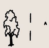 Задание 1502. Глаз наблюдателя находится перед щелью в точке А (рис. 370). Сделав схематический рисунок, покажите на нем, какую часть дерева видит наблюдатель; в какой точке (AJ перед щелью наблюдатель мог бы видеть все дерево целиком.