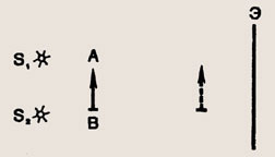 Задание 1506. Перечертив рисунок 373 в тетрадь, покажите на нем области тени и полутени, образуемые за непрозрачным предметом АВ, который освещается двумя источниками света S1 и S2.