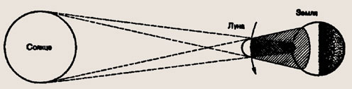 Задание 1512. Укажите те области (рис. 377), в которых наблюдается полное затмение Солнца, частное затмение (только часть диска Солнца закрыта Луной), где затмение Солнца не наблюдается. Рис.377