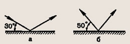 Задание 1540. Угол между зеркалом и падающим на него лучом составляет 30° (см. рис. 381, а). Чему равен угол отражения луча? Чему равен угол падения луча (см. рис. 381, б)?