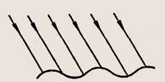 Задание 1544. На рисунке 383 дано направление солнечных лучей, падающих на волнистую поверхность воды пруда. Покажите примерный ход отраженных от воды лучей.