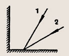 Задание 1545. На одно из двух зеркал, расположенных под прямым углом друг к другу, падают лучи 1 и 2 (рис. 384). Перечертив рисунок в тетрадь, постройте дальнейший ход этих лучей.