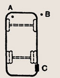 Задание 1546. Как должно быть расположено плоское зеркало, помещенное в точке В, чтобы водитель автобуса из точки А видел входную дверь С (рис. 385)? (Ответ дайте с помощью чертежа.)