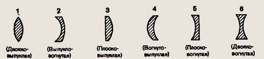 Задание 1583. На рисунке 409 изображены в разрезе линзы различной формы. Какие из этих линз собирающие и какие рассеивающие? Какие из них имеют мнимый фокус?