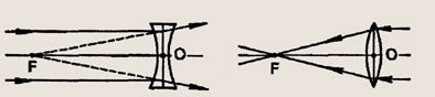 Как называются линзы, изображенные на рисунке 411? Какая из них имеет действительный фокус, а какая — мнимый? Одинаково ли у них фокусное расстояние?