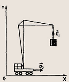 Задание 122. Скорость и, вертикального подъема груза краном равна 0,2 м/с. Скорость v2 тележки крана равна 0,1 м/с (рис. 27). Определите скорость движения груза относительно наблюдателя, неподвижно стоящего на поверхности Земли.