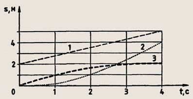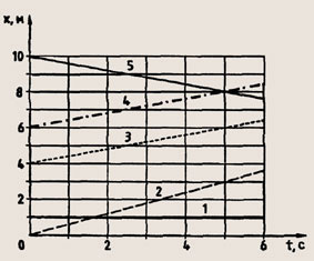 Задание 153. Какой из графиков на рисунке 32 соответствует равномерному прямолинейному движению, а какой равноускоренному? Можно ли однозначно утверждать, что точка пересечения графиков 3 и 5 свидетельствует о том, что в данный момент времени координаты тел совпадают?