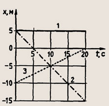 Задание 151. По заданным графикам (рис. 31) напишите уравнения движения x=x(t). Из уравнений и графиков найдите координаты тел через 5 с, скорости движения тел, время и место встречи второго и третьего тел.