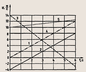 Задание 154. По данным графиков 1, 3, 4 (рис. 32) определите начальную скорость, приращение скорости за одну секунду, среднюю скорость движения за шесть секунд.