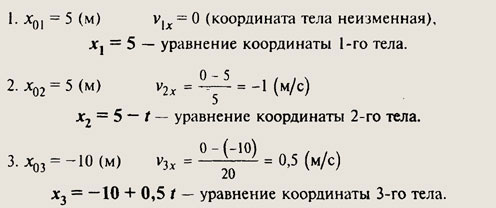 — скорость тела. На рисунке в учебнике графики движения 3-х тел. Для каждого из них надо определить x0 и vx и подставить их в формулу (1).