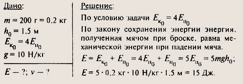 В момент падения мяч обладает лишь кинетической энергией, т. е.