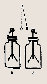 990. Подвешенная гилЬза вначале касалась незаряженной металлической палочки,