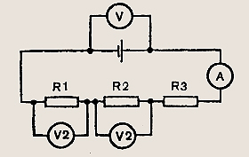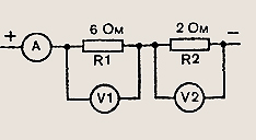 1118. Показание первого вольтметра 24 В (рис 298). Какрво показание амперметра