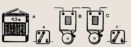 1136. На рисунке 305 показаны батарея Л, два звонка В и С и два выключателя