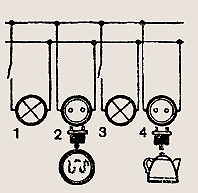 1132. На панели укреплены три патрона с электрическими лампами. Начертите