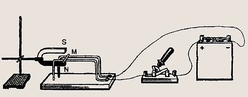 Стрелкой показано направление тока. Буквами обозначено: М — электромагнит; Я