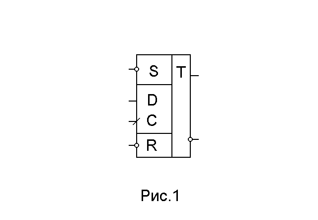 Для построения счетчиков и регистров используются синхронные триггеры, переключение которых происходит только при наличии синхронизирующего сигнала ( синхроимпульса ) на входе С. Наиболее часто для построения регистров и счетчиков используется универсальный Д - триггер, имеющий специальный информационный вход Д, и динамический вход С ( рис.1 ).
