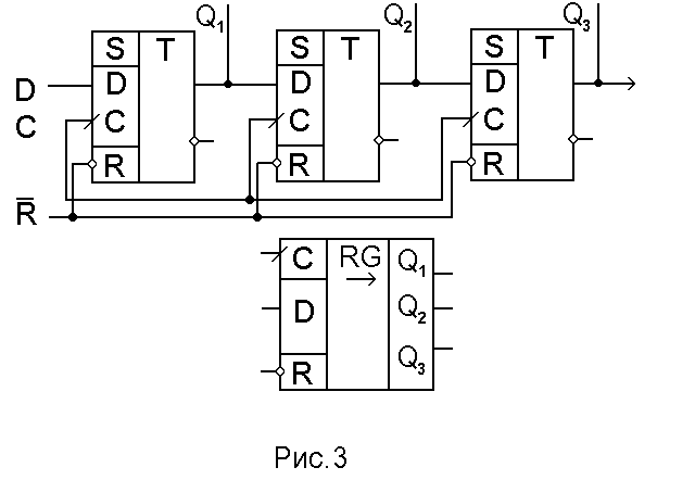 Функциональная схема и условно-графическое обозначение регистра сдвига представлены на рис.З.