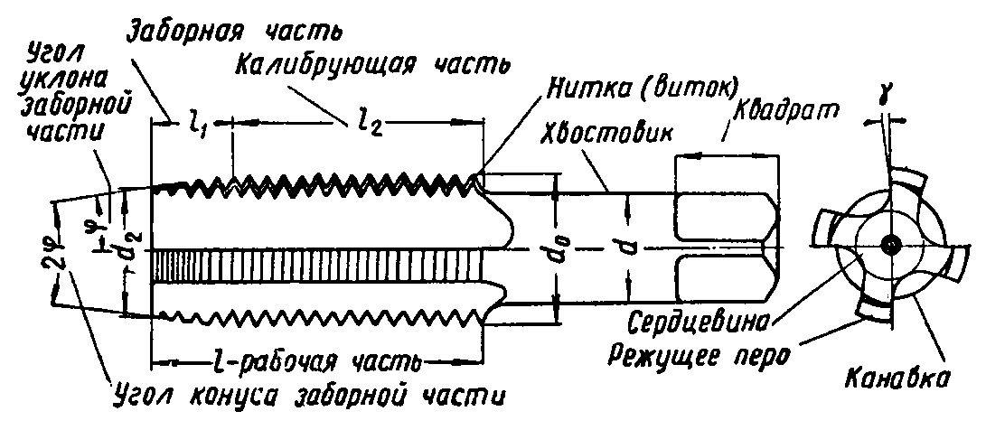 Основные элементы метчика.