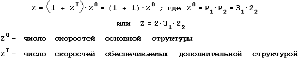 Следовательно, в данном станке на первом месте стоит вторая размножающая группа, на втором – основная и на третьем – первая размножающая группа. Сложенная структура представляет собой сумму обычных множительных структур и как бы содержит две и более кинематических цепей. Одна структура – основная, она используется для получения всех скоростей на шпинделе, остальные – дополнительные, они используются для части скоростей.