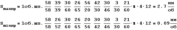 Для одной из цепей подач определяются Smax и Smin, диапазон регулирования подачи:
