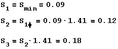 Принимаем стандартное значение f = 1.41, тогда теоретический ряд будет: 33, 47, 66, 186, 262, 370, 522, 735, 1040, 1470. Далее определяем допустимое отклонение по формуле: