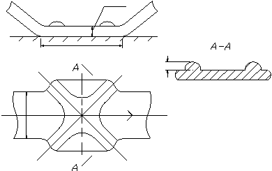 Прочностные характеристики и уровень надежности сварных и паянных соединений зависят в большей степени от правильного выбора сварного или паянного соединения, уровня и характера деформирования зоны сварки, сочетания соединяемых материалов. При сварке плоских выводов на контактные площадки кристаллов БИС прочность соединения зависит от характера деформации. Наиболее высокой прочностью обладает сварное соединение с ребрами жесткости. Такой вид наиболее оптимален при ограниченной ширине вывода. Вид сварной точки с оптимальным соотношением размеров, выполненной ультразвуковой сваркой, показан на рис.11.