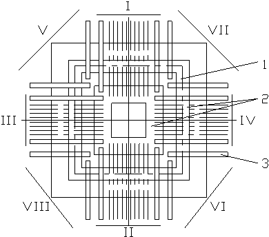 рис. 12 1 - кристалл ; 2 - защитные полиимидные рамки ; 3 - алюминиевые выводы . I - VIII - последовательность сварки