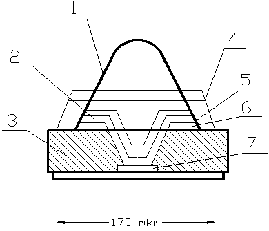 рис. 8 1 - алюминиевый вывод; 2 - внутренняя полиимидная рамка; 3 - кристалл; 4 - наружная полиимидная рамка.