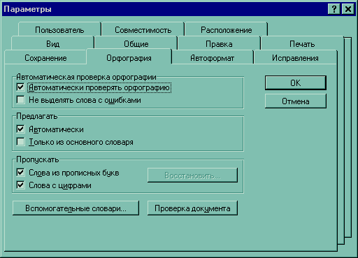 рис. 2. Вкладка Орфография окна диалога Параметры