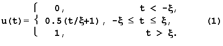 Такая функция описывает процесс перехода некоторого физического объекта из “нулевого” в “единичное” состояние. Переход совершается по линейному закону за время 2 x . Если параметр x устремить к нулю, то в пределе переход из одного состояния в другое будет происходить мгновенно. Эта математическая модель предельного сигнала получила название функции включения или функции Хевисайда :