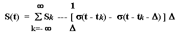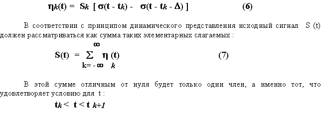 Теперь вернемся к задаче описания аналогового сигнала суммой примыкающих друг к другу прямоугольных импульсов (рис. 2) . Если S k - значение сигнала на k - ом отсчете, то элементарный импульс с номером k представляется как :