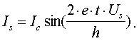 Где I s – ток через контакт, I c – максимальный постоянный джозефсоновский ток через контакт, j -- разность фаз.