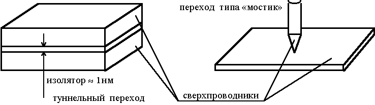 Существует такое явление как туннелирование (переход с одного энергетического уровня на другой без изменения энергии) куперовских пар. Оно состоит в том, что если два сверхпроводника соединить друг с другом “слабым” контактом, например очень тонкой полоской из диэлектрика, через него пойдет туннельный сверхпроводящий ток. Поэтому получается что обе системы сверхпроводников связаны между собой. Эта связь очень слабая, потому что мала вероятность туннелирования куперовских пар даже через очень тонкий слой изолятора.