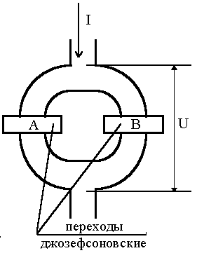 Если к такому кольцу приложить электрическое поле, то оно будет наводить в кольце циркулирующий сверхпроводящий ток. Он будет вычитаться из постоянного тока I в А и складываться в В. Тогда максимальный ток кольца зависит от магнитного потока Ф и равен:
