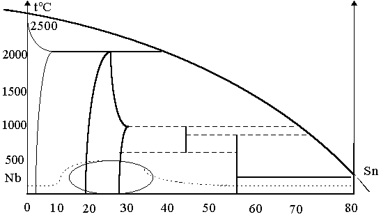 Рис.7 Диаграмма фазового равновесия системы Nb-Sn