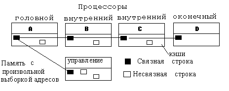 рис. 6. Запомининие в кэшах связной кэш-строки при помощи кодов-указателей адресов.