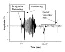 Очевидно, что огибающая тока не зависит от ёмкости конденсатора, а только от двух параметров прибора, R и L. Так что мы можем сравнить зависимость (4) с экспериментальными данными, то есть огибающей на осциллограмме тока Роговского. Чтобы получить форму тока ?в виде рыбы¦, мы должны предположить, что индуктивность, а именно, параметр c спадает очень быстро на временах T << t operation и затем выходит на постоянную, пока экспоненциальный член не обрезает полный ток. Формула (4) очень проста и поэтому удобна для анализа экспериментальных данных. Относительно члена (5) (а также (6)) можно сказать, что несмотря на то, что частота есть функция времени, эта функция вполне аналитичная и не содержит сингулярностей типа ?меандров¦. Эффект появления меандров на диаграмме тока Роговского может быть объяснён удвоением частоты (эффект, вызываемый перераспределинием тока в лайнере), но даже удвоение частоты недостаточно для объяснения появления гегагерцовых гармоник в излучаемом сигнале. Полезно также отметить один существенный недостаток модели ЭС. Для этого мы проанализируем простейшую электрическую цепь, содержащую лишь конденсатор и катушку (катушка имеет идеальную проводимость). Решение для тока в этой цепи есть: