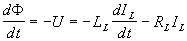где Ф есть полный магнитный поток, заключённый между лайнером и катушкой (в электродинамике магнитный поток определяется как число силовых линий магнитного поля, пересекающих некоторый замкнутый контур, поэтому величина Ф соответствует сумме всех магнитных потоков для каждого витка катушки, участвующих в процессе сжатия), L C ( t ) есть самоиндукция катушки и I C есть ток в катушке. Теперь мы должны ввести связь между магнитным потоком и током в катушке. Следует учесть, что в приборе магнитный поток создаётся двумя токами, током в катушке I C и током в лайнере I L . Это вызвано определённым эффектом потери ?диффузионного сопротивления¦ катушки. Рассмотрим этот эффект более подробно. Известно, что при пересечении магнитным потоком витков катушки, в последних, в соответствии с уравнением Максвелла, создаётся электрическое поле: