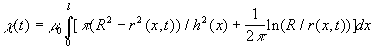 где R радиус витков катушки, h ( x ) шаг витков, r ( x,t ) координатная зависимость поверхности лайнера в момент t и l ?рабочая длина¦ катушки. Величина r ( x,t ) вычисляется как r ( x,t ) = max[ R v ( x v Vt )tg(a ) ; r 0 ] где V есть скорость детонации, a угол расширения конуса лайнера и r 0 начальный радиус лайнера. Сделаем следующую аппроксимацию