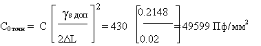 D L - погрешность длины верхней обкладки. При масочном способе получения конфигурации D L=0.01 мм. Расчет площади производим из условия квадратной формы обкладок (L=B, К ф =1/2)
