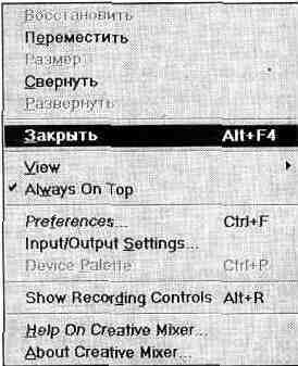 Включение опции Microphone Gain Control приводит к увеличению коэффициента усиления по микрофонному входу. Мы рассмотрели практически все возможности по трансформации отображения элементов микшера. Осталось лишь сказать, что при включении опции Always on Top меню на рис. 1.21 панель Creative Mixer всегда будет расположена поверх окон других приложений. Последние две команды этого меню позволяют вызвать интерактивную подсказку Help и получить сведения о версии программы. Детальное знакомство с микшером звуковой карты позволяет сделать вывод о том, что его использование возможно только на первом этапе записи для ориентировочной установки уровней сигналов. Для тонкой регулировки гром-